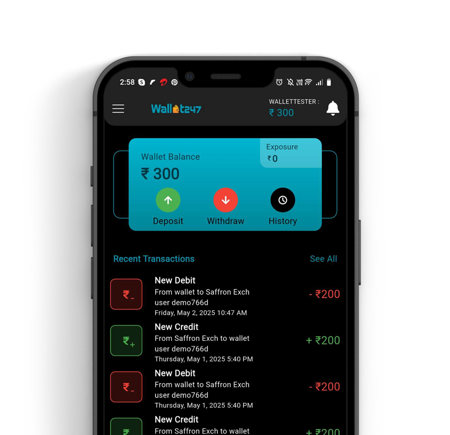 With just a smartphone and internet, Wallet247 gives you global access to instant betting. Create your AI ID, deposit or withdraw anytime with your preferred payment mode. No middlemen, no nonsense — just pure control. Bet fast, win fast. You’re the king of your own betting game.